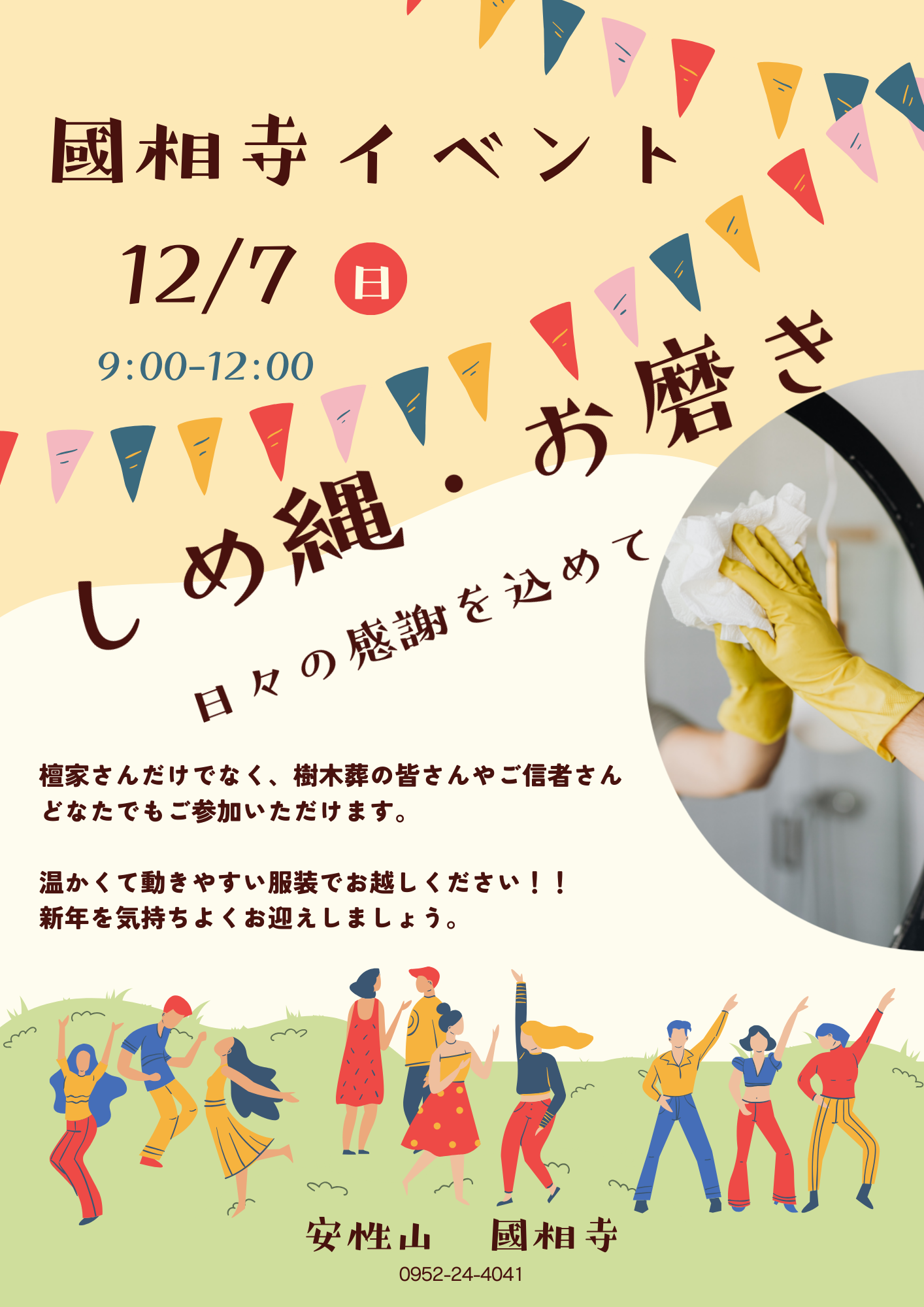 國相寺では毎年12月の初めの日曜日にお磨きとしめ縄作りを行っています。